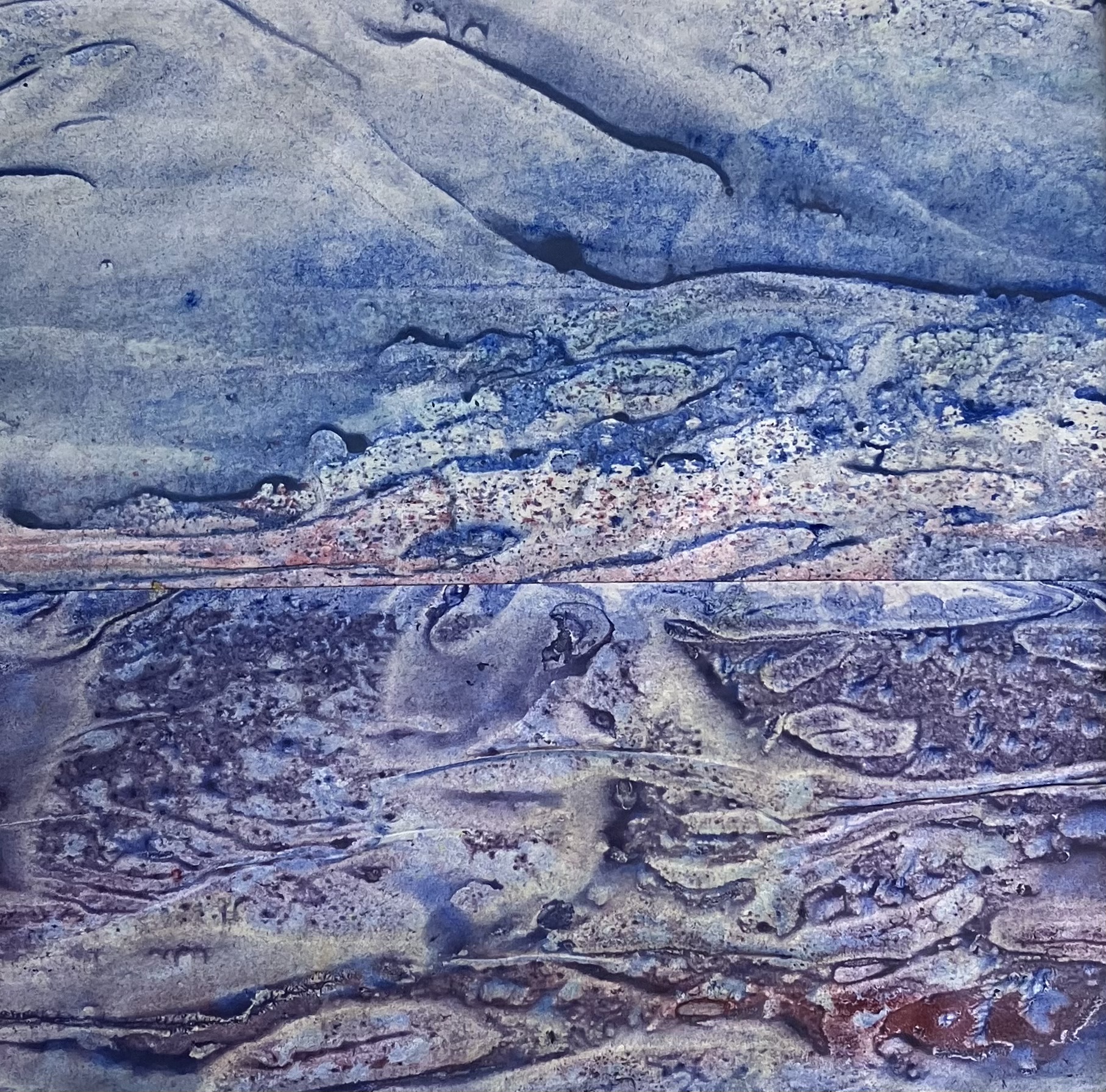 Mestadels organiskt måleri med vattenbaserad oljefärg. Ibland spår av många års arbeten med bilder på tunt kavlad rödlera, en blandteknik med screentryck som bas. Oftast abstrakt och enkla former. Ibland collage.