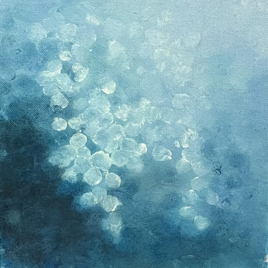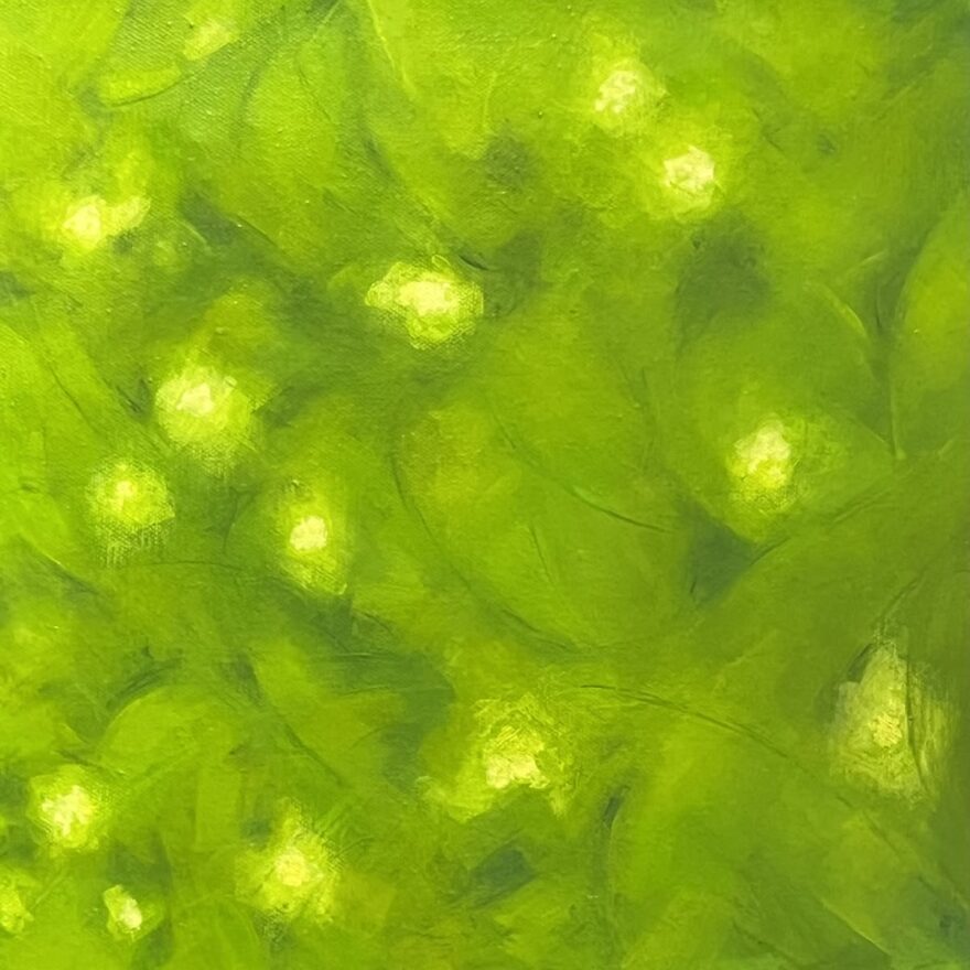 Mitt måleri rör sig ofta i gränslandet mellan föreställande och abstrakt. Jag vill framför allt förmedla en känsla. Lyckas jag sätta betraktarens fantasi i rörelse så känner jag att jag har kommit en bra bit på väg. Egentligen så har jag alltid tidigare sagt att naturmåleri inte är något för mig. Men jag får kanske krypa till korset och erkänna att jag trots allt blir inspirerad av naturen. Förutom en komplett färgpalett, så har naturen en väldig växtkraft. Något som jag försöker få med en liten gnutta av i mitt måleri.